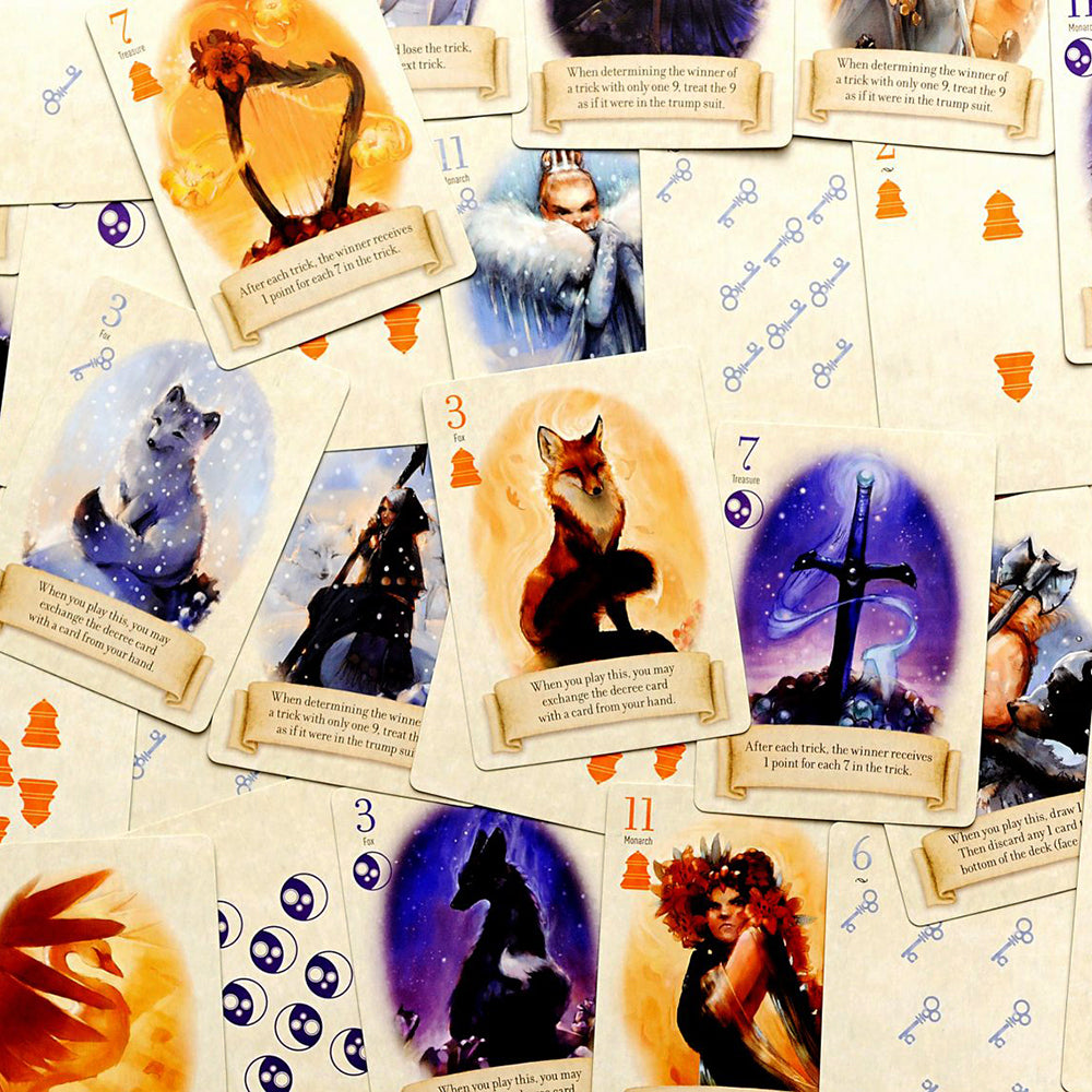 Score points by winning more tricks than your opponent, but don't get greedy! Win too many tricks, and you will fall like the villain in so many fairy tales.