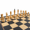 This set has been meticulously designed to offer a truly unique gaming experience. The handmade chessboard is a work of art, expertly crafted by combining the rich, stained black of tulip wood with the distinctive cream tones of root wood. Its surface boasts a matte varnish that enhances the wood’s natural beauty while providing a smooth, precise playing surface for the chess pieces.
