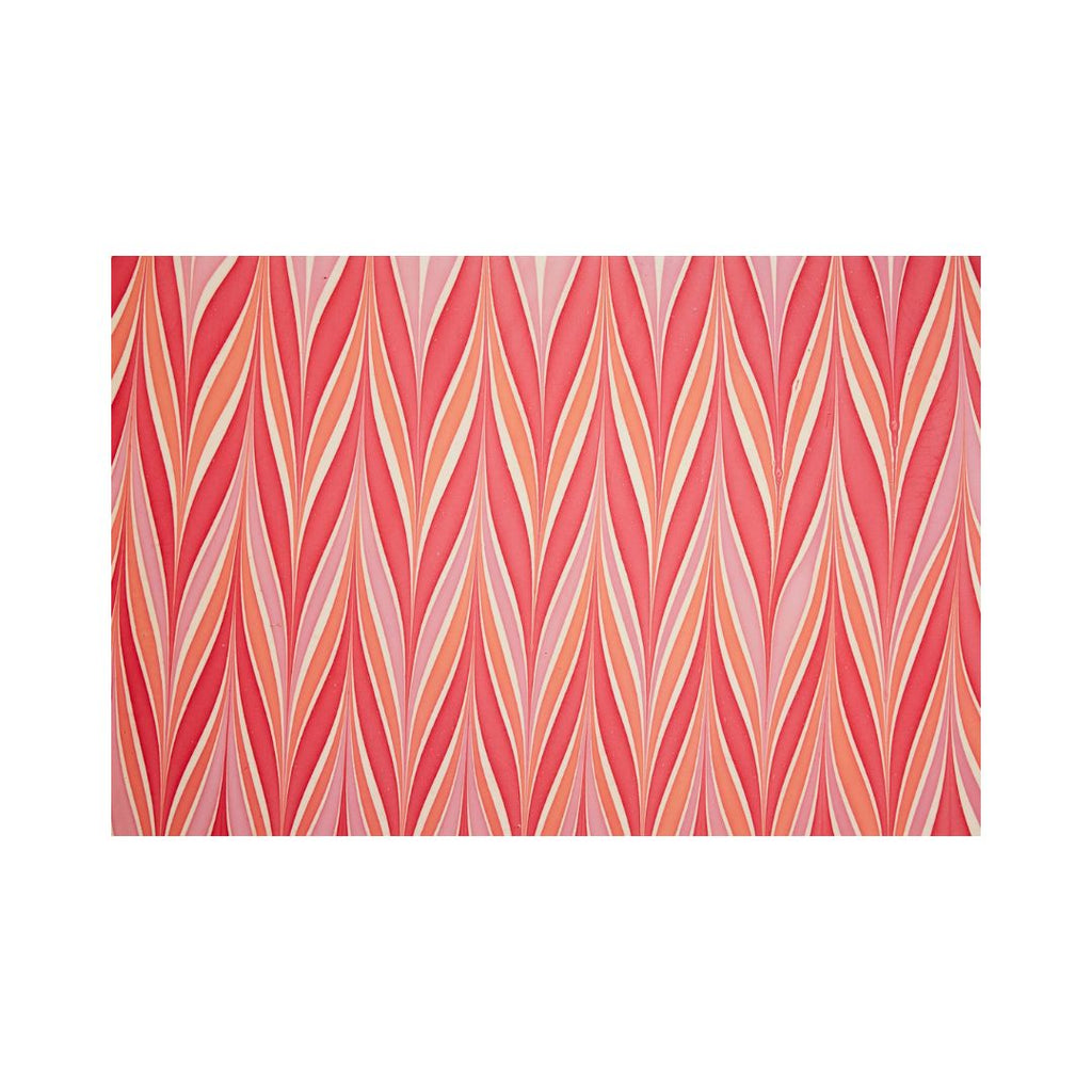 This beautiful and unique sheet of a handmade treeless wrapping paper has a beautiful candy stripe effect striped marbled design. Every one of the sheets are intricately hand marbled by a skilled Indian artisan on luxurious 100% recycled cotton handmade papers.