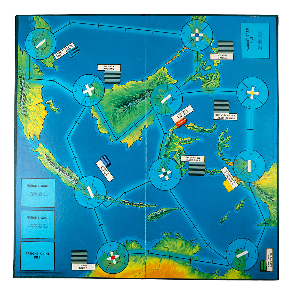 Designed by John King during his time at RAF Topcliffe in 1970, this engaging game puts players in the roles of competing air-freight companies transporting cargo between airfields in northern Australia and Southeast Asia.