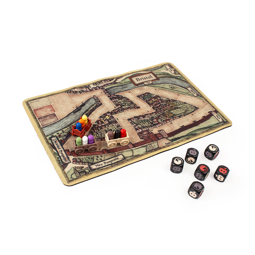 You are racing down the streets, desperate to escape into the safety of the countryside. If your cart is the first out of town you and your cart-mates win! Or do you? Some villagers on your cart may secretly already have the plague. If you leave town with a plagued villager on your cart, you will catch the plague and lose! What will you do to make sure that doesn’t happen? And who will you trust (or betray) along the way?