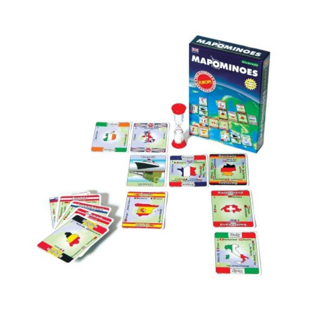 With much the same principle as double six dominoes, in Mapominoes you build a map of Europe by connecting countries sharing a common border. Race to be the first player to play all your country cards on the table and win the game. Don't get stuck with Portugal (one neighbour), try and get France (seven neighbours).