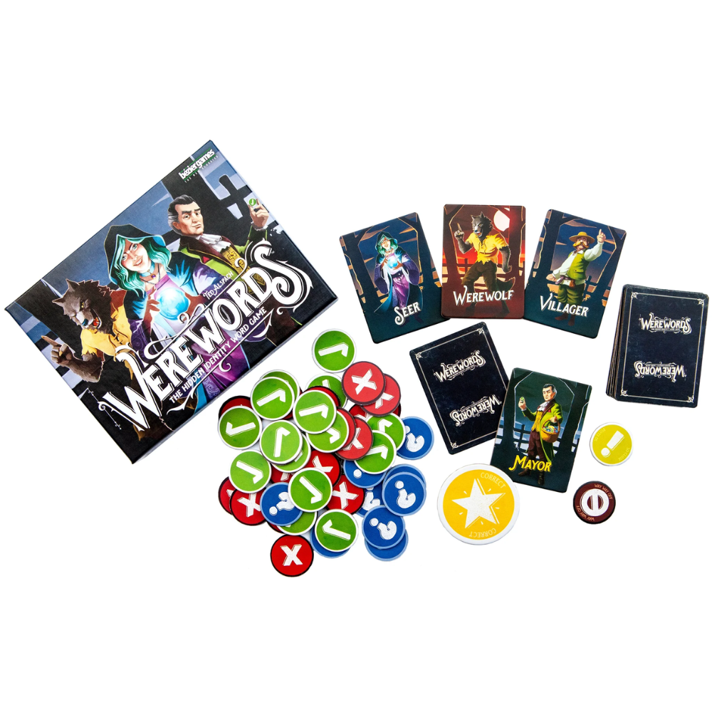 In Werewords, players must guess a secret word by asking "yes" or "no" questions—before time runs out. But there’s a twist: one player is a secret Werewolf trying to mislead the others, and another is the Seer who knows the word but must be careful not to reveal their identity. With quick rounds, secret roles, and clever deduction, Werewords combines wordplay and social deception into a thrilling experience for all.