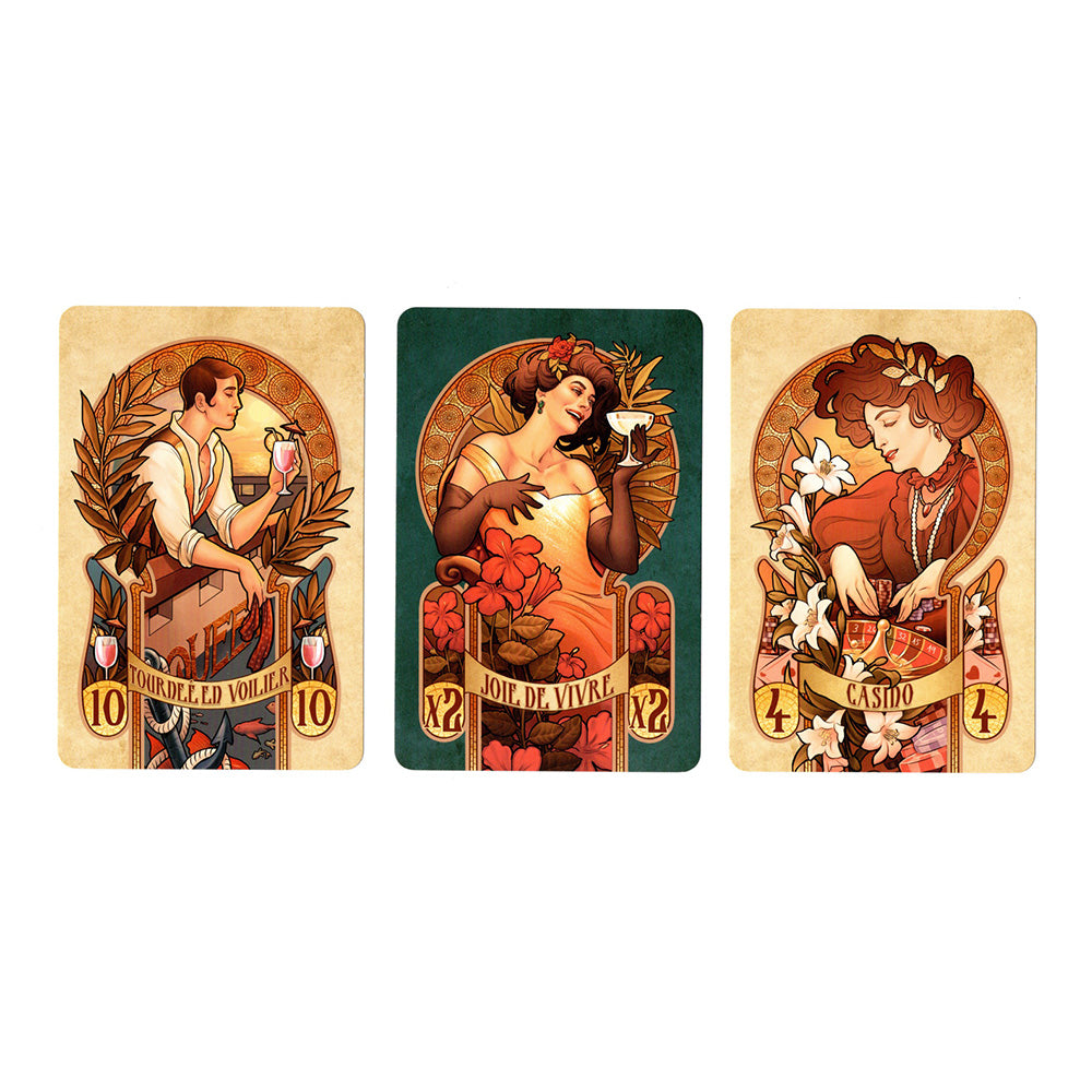 In Reiner Knizia's classic auction game, players must bid against each other for life's luxuries, while avoiding going bankrupt in the process. High Society features 16 stunning Art Nouveau-inspired illustrations by Medusa Dollmaker.