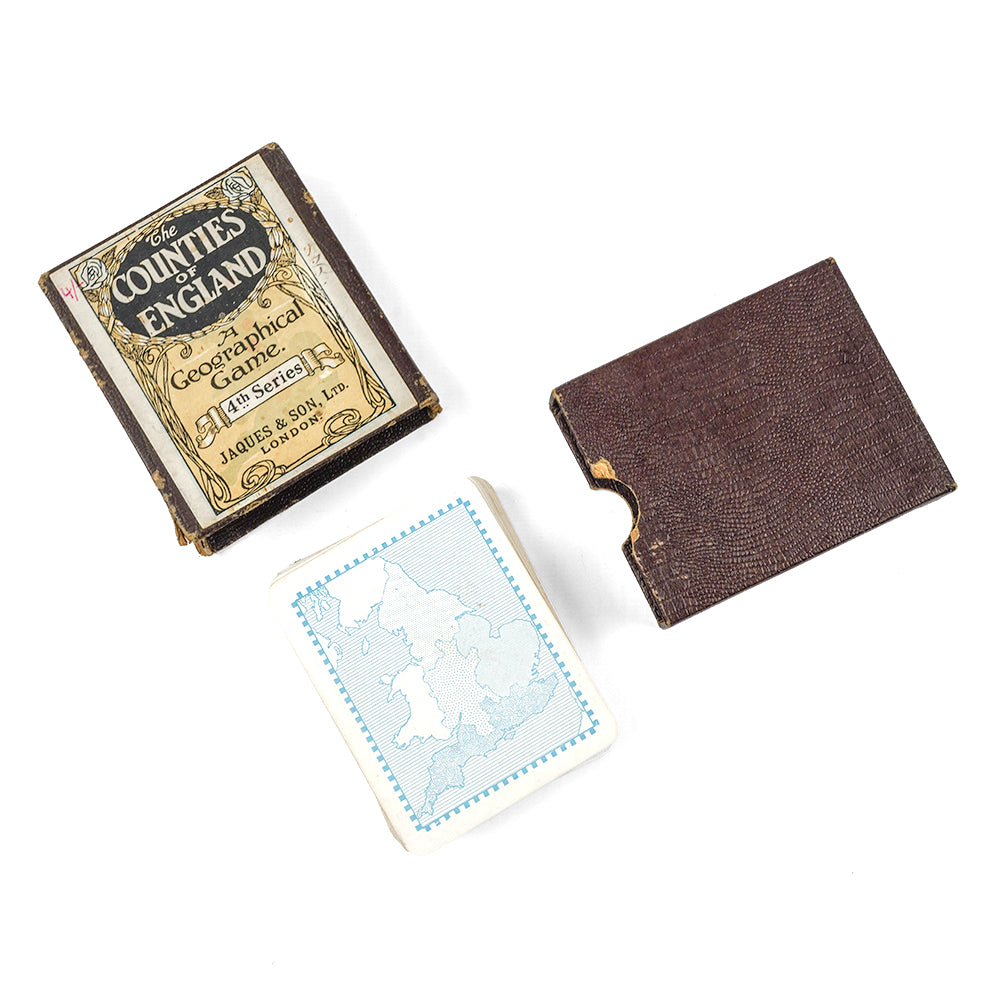 The Counties of England card game was based on Happy Families and first published by Jaques in 1866. The game was designed to educate as well as entertain. Each of the place-name cards have a picture and some interesting facts about that particular place.