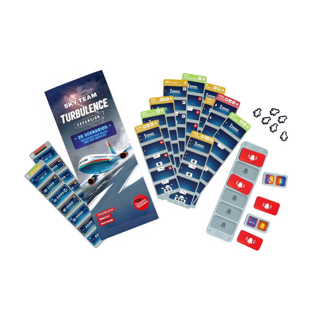 Take your cockpit coordination to new heights with the Sky Team: Turbulence Expansion! This thrilling expansion introduces daring new scenarios, dynamic weather conditions, and evolving challenges that push even the most seasoned pilot-copilot pairs to the limit. If you’ve mastered the runways of Sky Team, it’s time to test your nerves and teamwork under pressure.