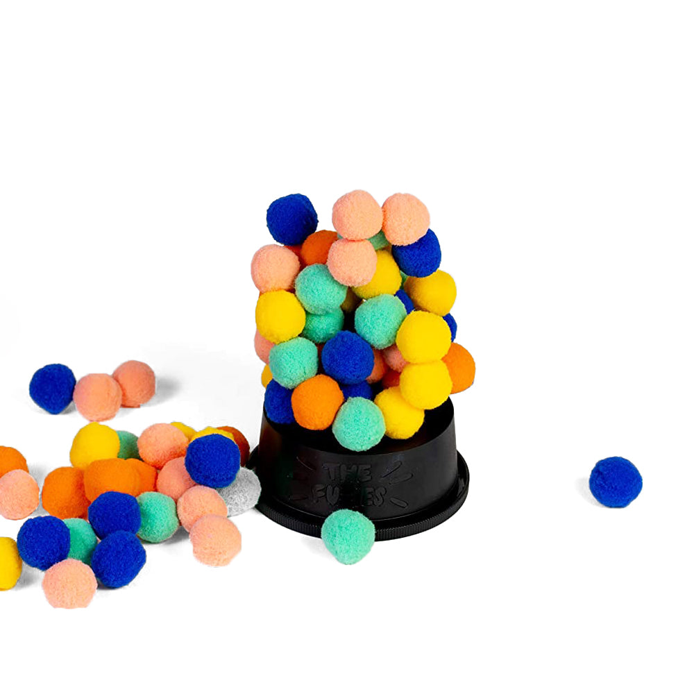 Contents: 95 Fuzzies, 30 cards, 1 rulebook, 1 container w/lid, 1 tweezers.