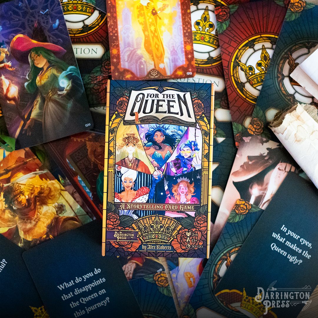 Step into a realm of royal intrigue with For The Queen, a storytelling card game where players embody members of the Queen’s court—navigating complex relationships, secrets, and dilemmas. Together, you weave a narrative filled with political uncertainty, love, duty, and betrayal. But one question will define it all: when the moment comes, will you stand by her side—or turn against her?