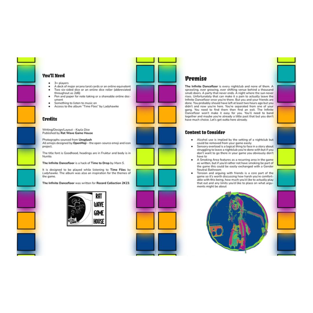 Step into the pulsating world of The Infinite Dancefloor, a unique tabletop role-playing game that immerses players in an endless, ever-evolving dance party. Designed by Kayla Dice, this game explores themes of alienation and connection, challenging players to navigate the social dynamics of an eternal celebration.