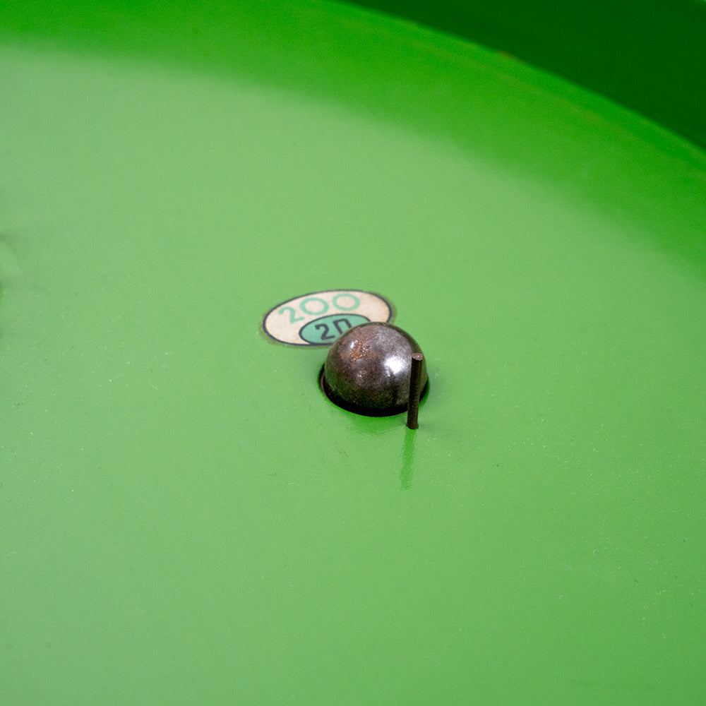 Very good condition, a little bit of felt has worn off the adjuster on the back, but there are no pins missing and includes a full set of original steel balls. Plus the spring loader still works. Grade 1 under the Hoyles Vintage Grading System.