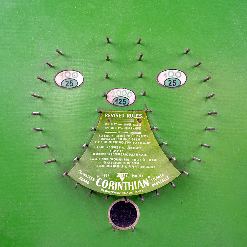 This exceptional green-painted Corinthian 'Abbey' bagatelle, dating from 1951.