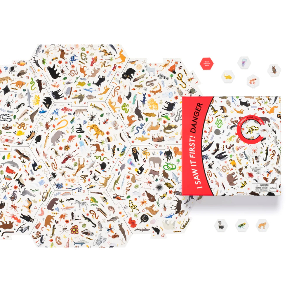 Now in a square box, I Saw it First! Danger includes a double-sided hexagonal board and 300 counters with charming animal illustrations by Caroline Selmes. Simple to understand and addictive to play, this fun and challenging game will delight adults and children alike.