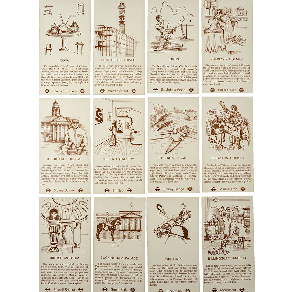 Players begin at a mainline terminus and navigate the extensive transport network, aiming to visit 6 tourist locations represented on Souvenir cards drawn from a deck. Players must stop at the corresponding Tube stations for each location and ultimately return to their starting point.