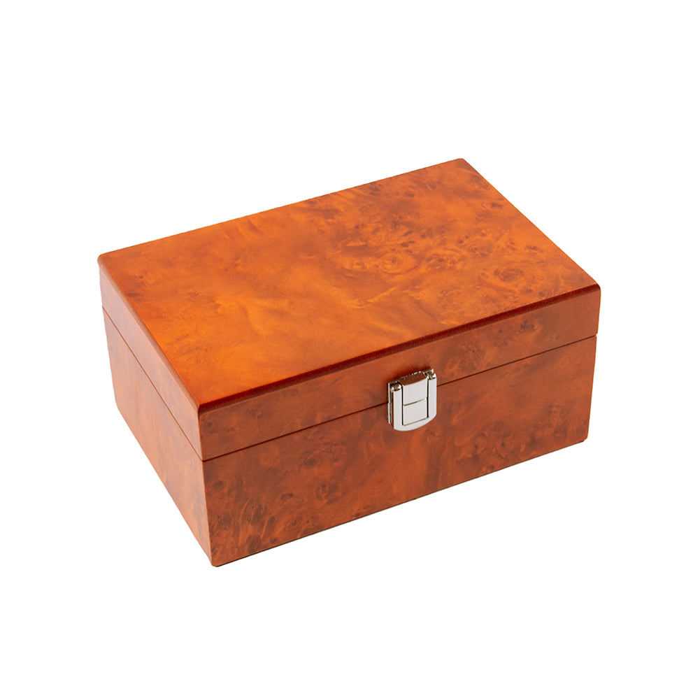 Double-weighted Staunton chess pieces in sheesham and boxwood. All have felted bases and come in a wooden presentation box with hinged lid and clip fastening. The small set comes in a light-coloured wooden box.