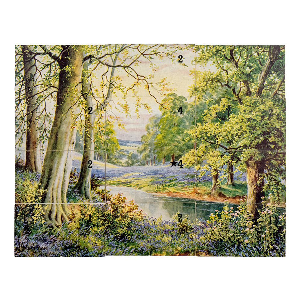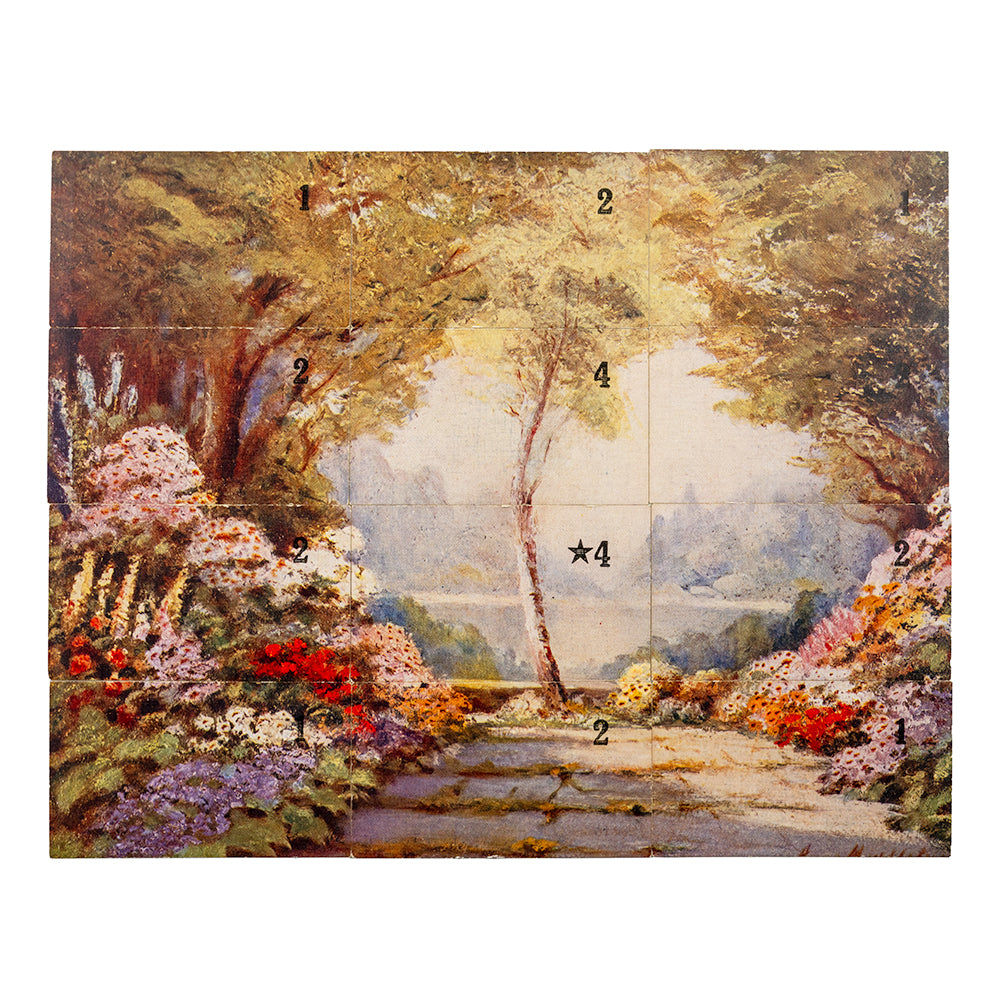 The game is complete with a full set of 52 cards and the original rules booklet. 48 of the cards feature partial views of a larger picture that, when arranged correctly in a jigsaw fashion, form four different images.