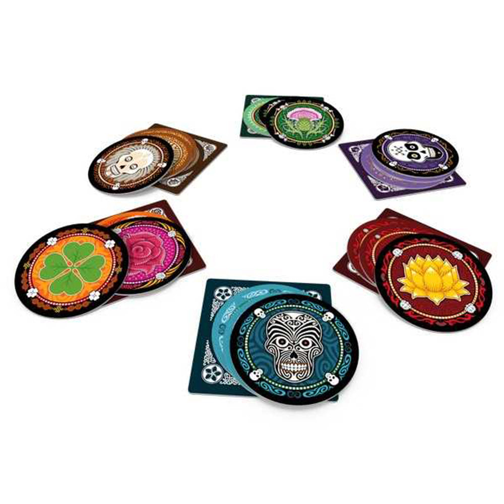 Everyone has 4 cards: 3 flowers and 1 skull. Place them face down turn by turn until you want to bid how many safe flower cards you think you can turn over. Turn over a skull? You lose the round and a random card is taken from you. Turn over the number of flowers you called? You win the round. First person to win two rounds is the winner.