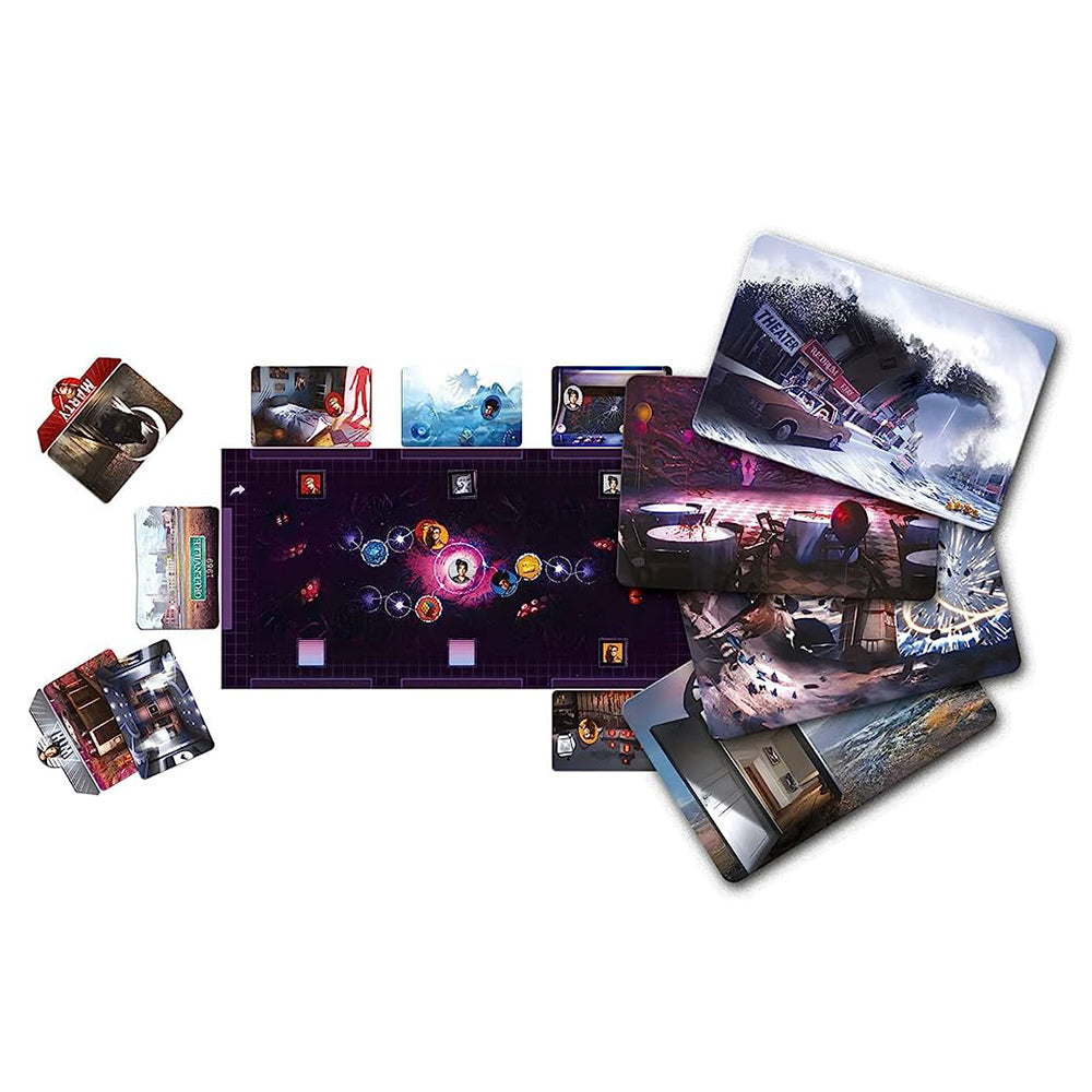 Greenville 1989 is a co-operative narrative game in which each player represents a character who has experienced or witnessed supernatural events. They must describe these events to their fellow players, who must then locate this character and save them. This lead role changes each round, giving everyone the chance to be lost or found — and you want to be found or else the group is pulled closer to the void engulfing the town that threatens to consume you all.