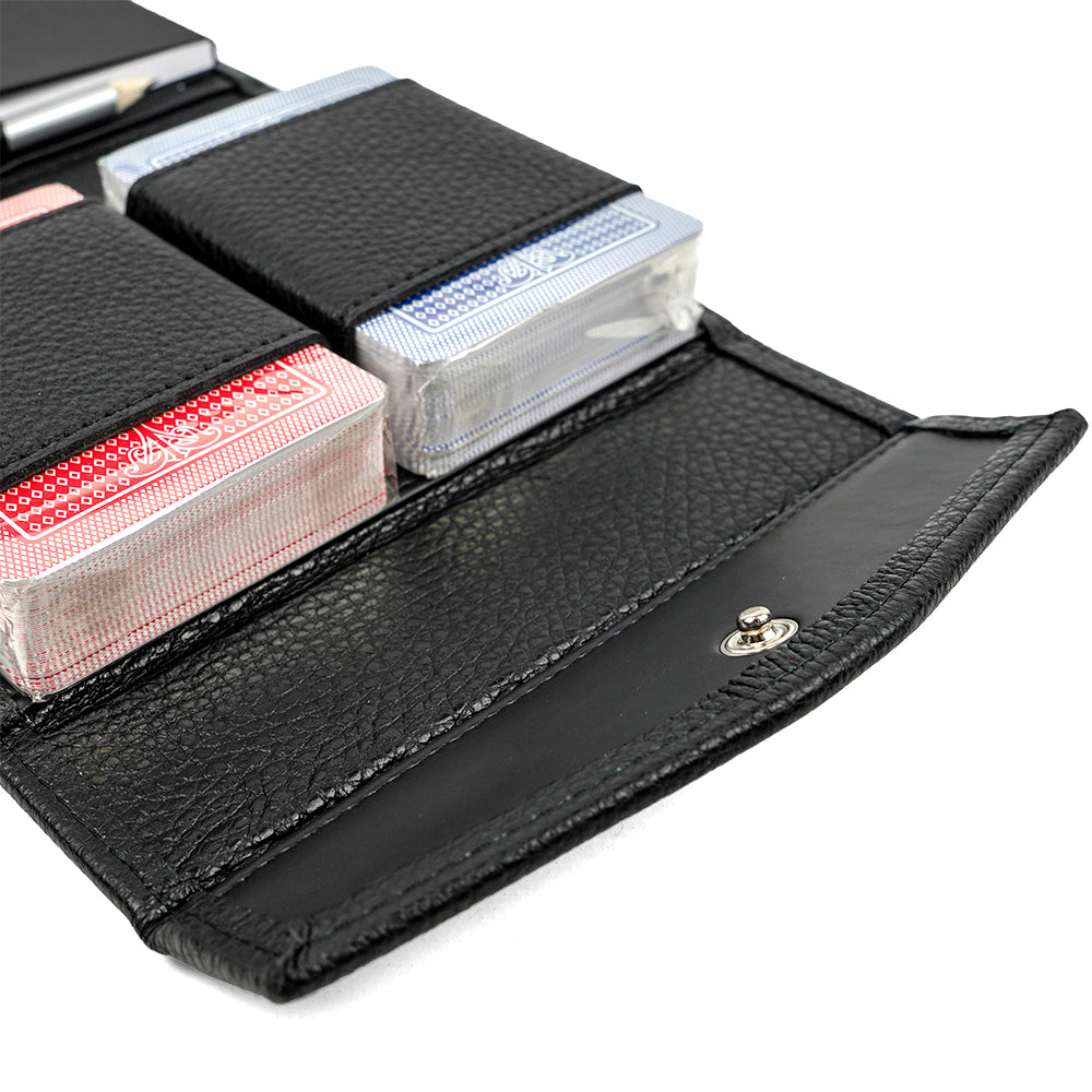Handmade in Europe using genuine Italian leather, this double playing card case with notepad for score keeping is the perfect gift for the ultimate games player.