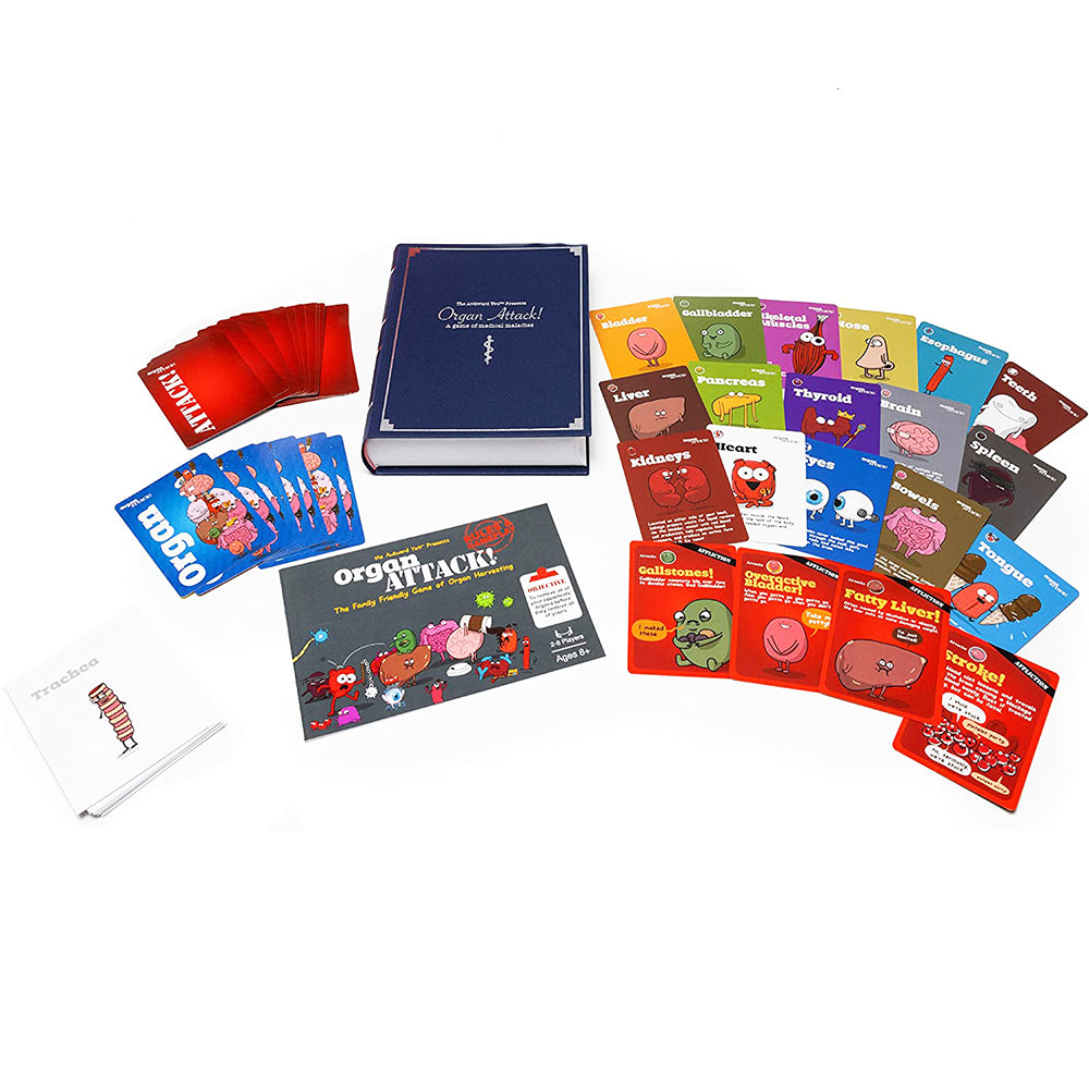 In the game, each player is dealt a set of organs. The players use immunity, affliction, and other tactical cards to protect themselves while inflicting disease & bodily harm on their opponents. For example: