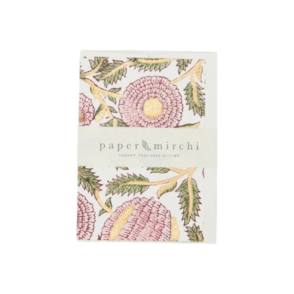 Hand designed and made cards and wrapping paper, made by skilled artisans on luxurious tree-free 250gsm cotton cardstock. No two sheets or cards are the same! (Cards are blank inside for your message.)