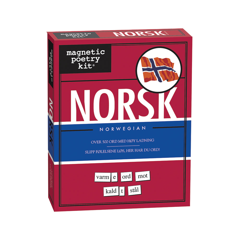 The Norwegian Magnetic Poetry Kit was developed by bilingual fans of Magnetic Poetry. Designed in Norway, packaging is entirely in Norwegian.