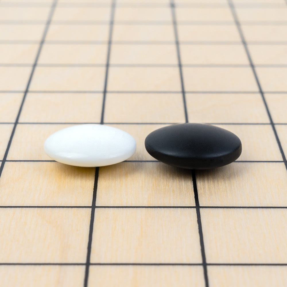 A classic game has been pictured using the stones on a 19x19 plywood board sold separately.