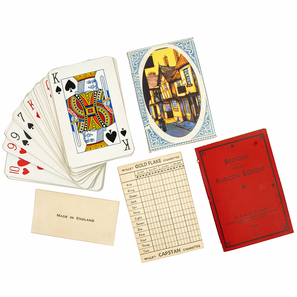 A truly special and rare Bezique set in immaculate condition, produced by Mardon, Sons and Hall for W.D. & H.O. Wills in 1933. Card games like this were originally given as gifts after people were able to collect sets of mini cigarette cards.