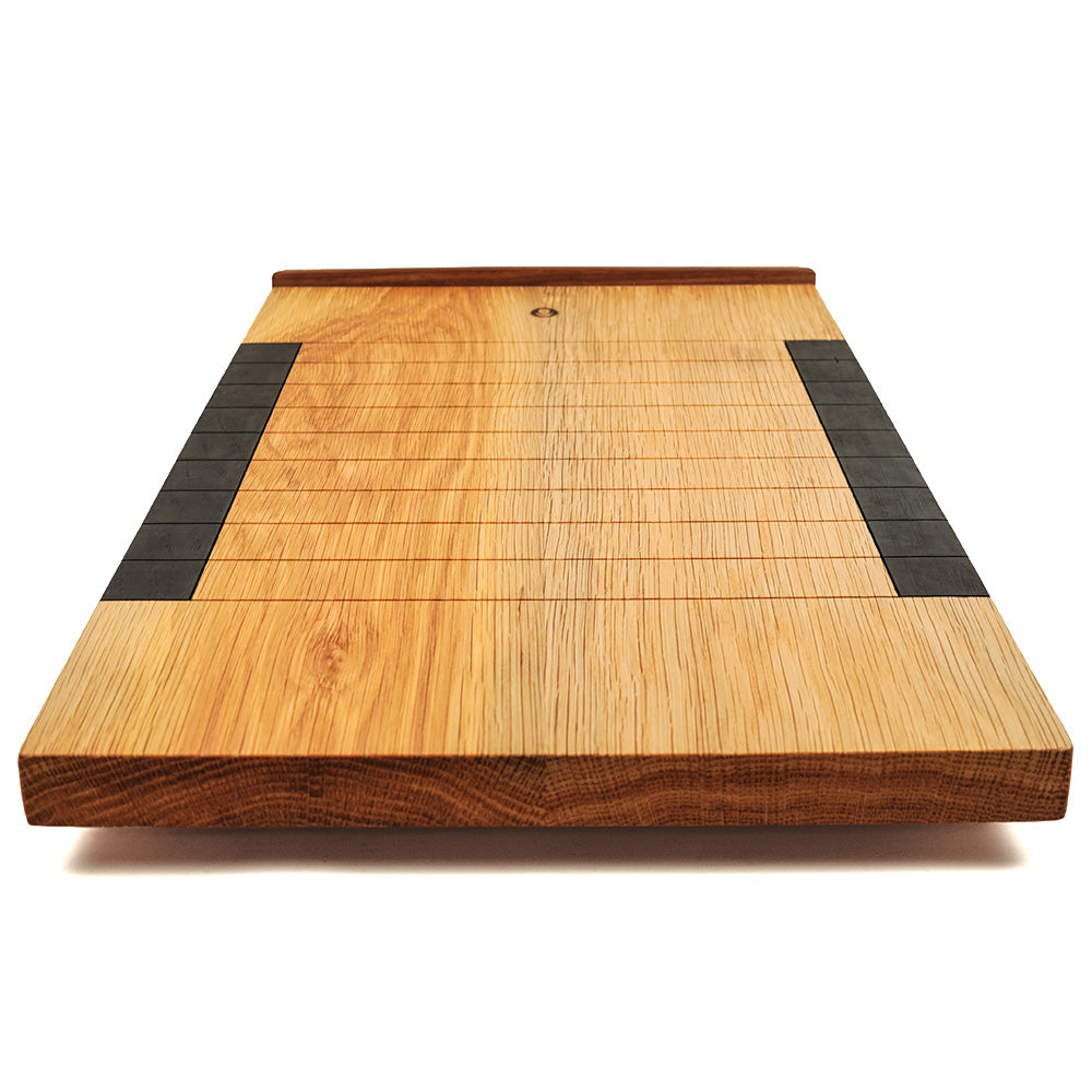 Each board is individually numbered on the oak baton and accompanied by a 100% cotton storage bag.The board measures 54 x 30 x 4 cm. Please note: as wood is a natural material and all these sets are made by hand, there may be some slight variation from the photograph.