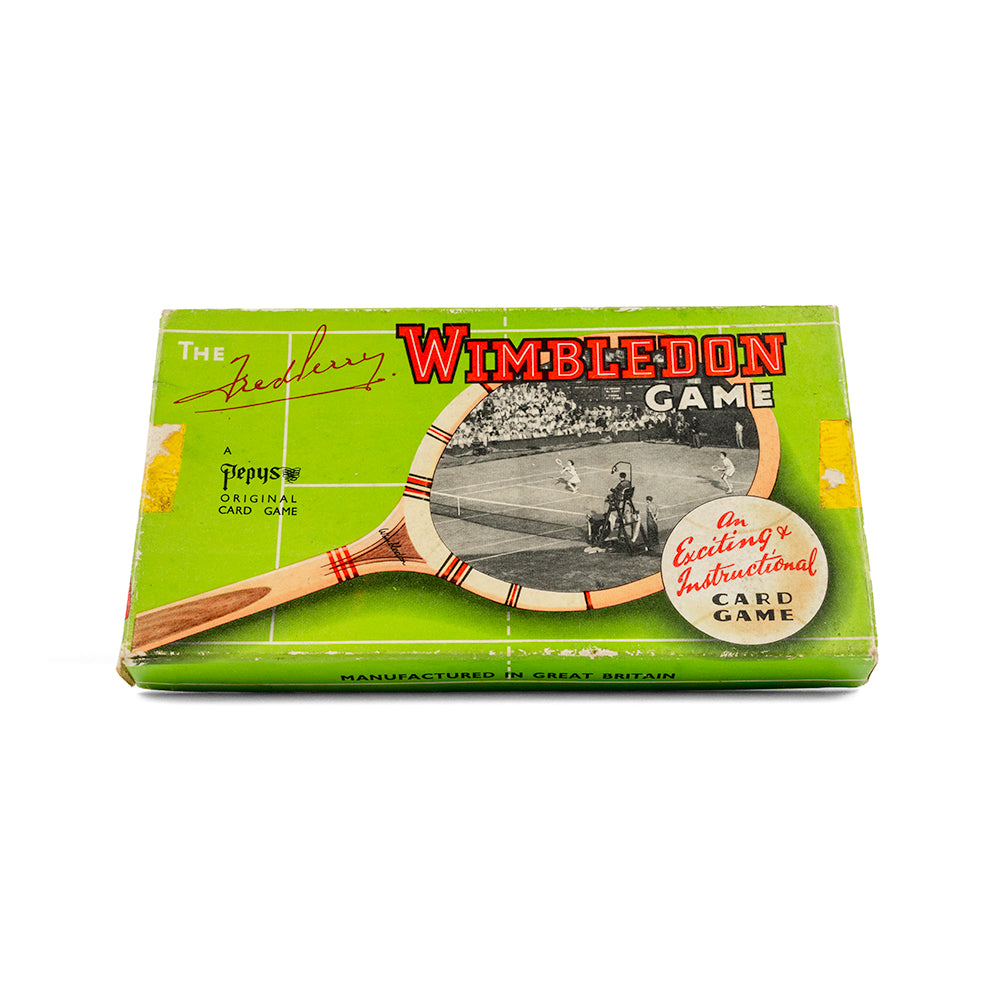 Introducing Perry’s Wimbledon Game, an original Pepys card game that beautifully simulates the sport of tennis. As stated on the box, it is "an exciting and instructional card game," making it both entertaining and informative for players of all ages.
